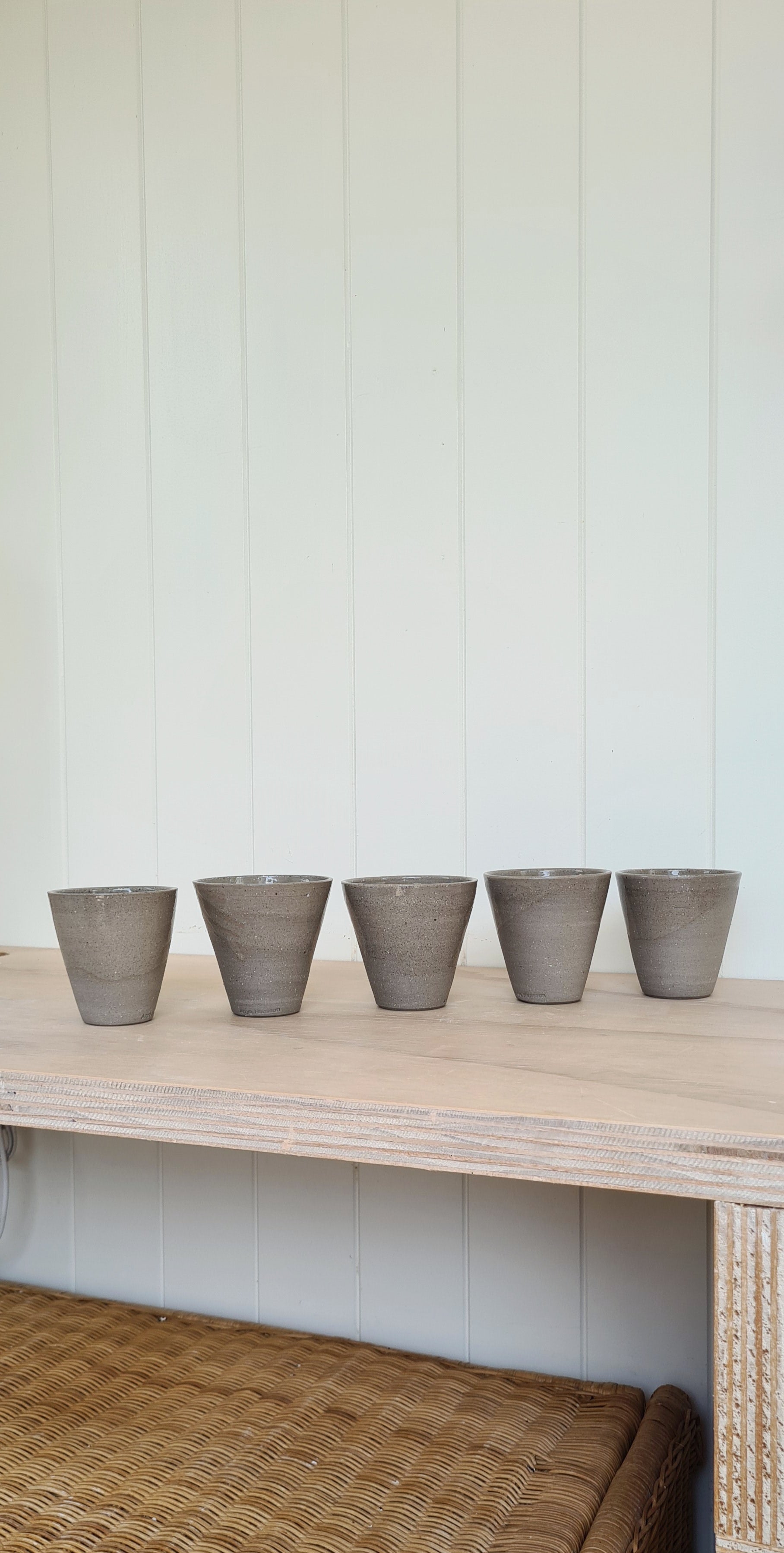 This small, elegant drinking vessel is handcrafted from Australian clay and finished in a deep, dark grey tone. A clear, glossy drip glaze cascades softly down the surface, creating a subtle contrast and a unique finish on every piece.